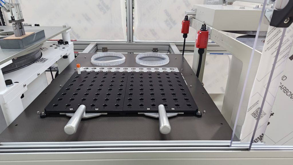 This machine was designed to label cups, bottles with molding.